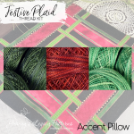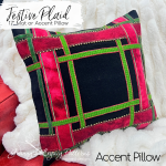Festive Plaid is a versatile wool appliqué design that can be finished as a 17" square mat or a cozy accent pillow. Featuring intersecting bands of rich red and green artisan-dyed wool on a classic black background, this timeless piece is beautifully accented with gold seed beads and Valdani perle cotton embroidery. A sophisticated project that brings a warm, festive touch to your holiday décor.