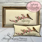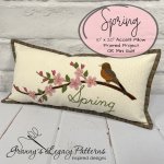 Capture the very first signs of spring with the Spring Robin pillow. This 10" x 20" wool appliqué design features a sweet robin perched on the branch of a blossoming tree, dotted with soft pink blooms. Set against a creamy, subtly textured Diamond Textiles fabric, this piece brings a gentle, fresh-from-winter charm to your home décor.
