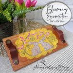 This sunny, whimsical project is hopping with spring flair! Featuring our Woolly Mammoth artisan dyed wool background in a yummy yellow plaid with sweet pink blooms and plucky bunnies! Project is stitched with Valdani perle cotton embroidery and embellished with glass seed beads. Your finished project displays beautifully on our handmade mini cherry tray.